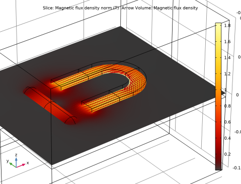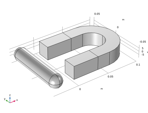 این مثال نحوه مدلسازی میدان مغناطیسی اطراف آهنربای دائمی را نشان میدهد. همچنین نیرویی را که با آن بر روی میله آهنی مجاور عمل می کند محاسبه می کند. به لطف تقارن هندسه و ضد تقارن میدان مغناطیسی، تنها یک چهارم هندسه نیاز به مدل سازی دارد.