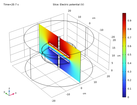 از آنجایی که کوارتز و هوا رسانایی پایینی دارند، جریان های جابجایی در ابتدای گذرا برای حدود 1 میکرو ثانیه غالب خواهند بود. پس از آن، جریان های هدایت قابل توجه خواهد بود و مدل شروع به انحراف از تقریب تحلیلی می کند. از آنجایی که در این مدل هر دو جریان جابجایی و هدایت وجود دارد، از رابط جریان های الکتریکی استفاده کنید.