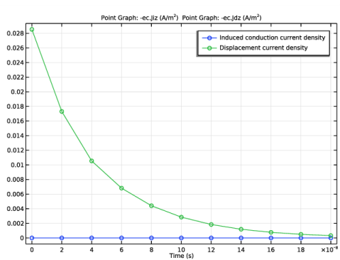 The resulting plot shows a conduction current that is negligible, when compared to the displacement current.
