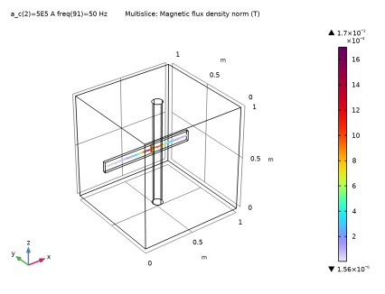 1 | در پنجره Model Builder ، گره هنجار چگالی شار مغناطیسی AC را گسترش دهید ، سپس روی Multislice 1 کلیک کنید . |
