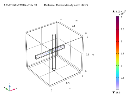 1 | در پنجره Model Builder ، گره AC Electric Current Density را گسترش دهید ، سپس روی Multislice 1 کلیک کنید . |