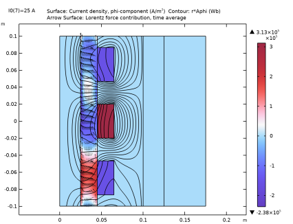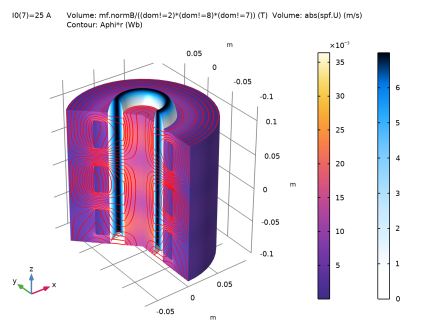 این مدل در یک هندسه متقارن محوری دوبعدی با استفاده از رابطهای فیزیک میدانهای مغناطیسی و جریان آرام ، که از طریق رابط چندفیزیکی Magnetohydrodynamics جفت شدهاند ، تنظیم شده است .