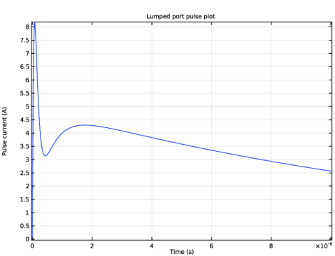 در این مثال، جریان ESD با استفاده از ویژگی Lumped Port با Extended HBM، همانطور که در شکل 2 نشان داده شده است، تولید می شود . این جریان یکی از معروف ترین جریان های آزمایشی است، زیرا در برابر شدیدترین شرایط آزمایش می کند. جریان را می توان به راحتی با کلیک کردن روی دکمه Plot Pulse Shape در پنجره تنظیمات مشاهده کرد .