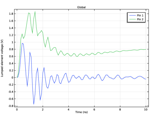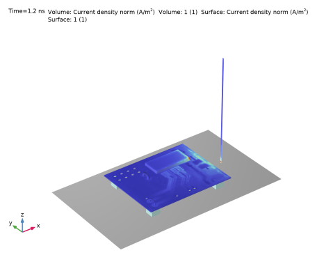 ولتاژ القایی در دو پایه ریزتراشه روی PCB با استفاده از ویژگی Lumped Element محاسبه می شود . مرزهای بیرونی با شرایط مرزی پراکندگی مدل‌سازی می‌شوند.