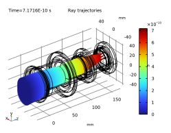 شکل 4: در این ردیابی پرتو، میدان جابجایی همراه با تنش فون میزس نشان داده شده است.