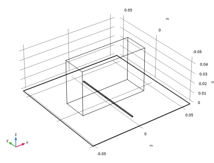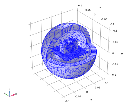 کل ساختار آنتن در یک کره با خواص خلاء مدل سازی شده است. این کره توسط یک دامنه لایه کاملاً منطبق (PML) کوتاه شده است که به عنوان یک مرز برای فضای آزاد عمل می کند. فاصله آنتن تا PML متغیری است که نیاز به مطالعه دارد. PML نباید در ناحیه میدان نزدیک واکنشی ساختار آنتن باشد. با این حال، اندازه میدان نزدیک واکنشی کاملاً قابل تعریف نیست، بنابراین فاصله آنتن تا PML باید برای هر مدل مطالعه شود. ضخامت PML به خودی خود حیاتی نیست و می تواند تقریباً یک دهم قطر کره هوا باشد.