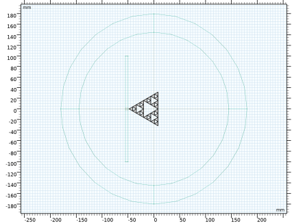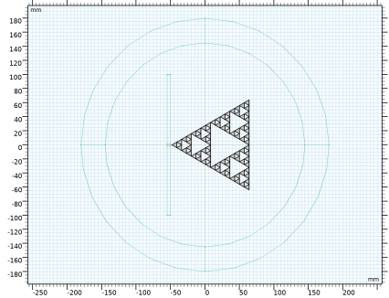 فراکتال یک فرم ریاضی است که الگوهای خود تکراری را نشان می دهد. یک ساختار فراکتال به دلیل ویژگیهای هندسی خود میتواند رزونانسهای متعددی را در کاربردهای RF ایجاد کند. این مدل آنتن از یک مثلث Sierpinski مرتبه 3 استفاده می کند و پارامترهای S محاسبه شده تطابق ورودی خوبی را در رزونانس های مرتبه بالاتر نشان می دهد.