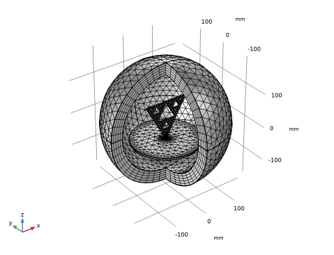 شکل 1 مدل آنتن تک قطبی فراکتال Sierpinski را نشان می دهد که از رادیاتور فراکتال، صفحه زمین، تغذیه کواکسیال و لایه کاملاً منطبق تشکیل شده است. بخش رادیاتور فراکتال، با شکل مثلث معکوس، به عنوان یک رسانای الکتریکی کامل (PEC) که در بالای صفحه زمین قرار می گیرد، مدل سازی شده است. انتهای پایین ساختار فراکتال، که در اصل یک هندسه مثلثی نوک تیز است، برای اتصال به تغذیه کابل کواکسیال پر شده از دی الکتریک، اصلاح شده است. قطر صفحه زمین بزرگتر از نیم موج تشدید 2 آنتن است. تمام قطعات فلزی، از جمله صفحه زمین و همچنین هادی های داخلی و خارجی کواکسن، به عنوان هادی های الکتریکی کامل مدل سازی شده اند. کل ساختار آنتن توسط یک لایه کاملاً منطبق محصور شده است.