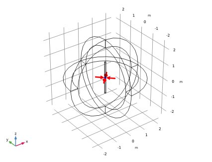 مدل آنتن شامل دو استوانه است که هر یک از بازوهای دوقطبی را نشان می دهد. طول موج فضای آزاد در فرکانس کاری آنتن 4 متر است. بنابراین، هر یک از بازوهای آنتن 1 متر طول دارند و با محور z هم تراز هستند . شعاع بازو 0.05 متر انتخاب شده است. در حدی که شعاع به صفر نزدیک می شود، این آنتن به حل تحلیلی آنتن دوقطبی نیم موج خطی نازک نزدیک می شود.