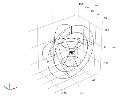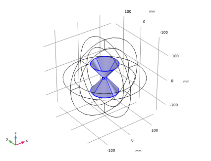 آنتن دو مخروطی، که در شکل 1 نشان داده شده است ، از دو عنصر مخروطی، فلزی و تابشی تشکیل شده است. شکل 2جزئیات ساختار خوراک در مرکز را نشان می دهد. بخش کوتاهی از کابل کواکسیال پر شده با دی الکتریک از یک حوزه استوانه ای کوچک حاوی منبع تغذیه شروع می شود که بخشی از دامنه مدل نیست. درعوض، شما منبع را با اعمال یک شرط پورت تودهای کواکسیال در مرز رو به کابل کواکسیال مدلسازی میکنید، که موجی را به سمت پایین کواکسیال پرتاب میکند. هادی های داخلی و خارجی کواکس از طریق سیم هایی به رادیاتورهای مخروطی شکل متصل می شوند که شما آنها را به عنوان هادی های الکتریکی کامل مدل می کنید. یک بریدگی متقارن کوچک در هر مخروط فضای کافی برای نصب و مونتاژ را فراهم می کند. فاصله بین رادیاتورها و سطح نوک انتهای مخروط، واکنش درگاه ورودی آنتن را کنترل می کند و می تواند برای تغییر عملکرد آنتن تنظیم شود.