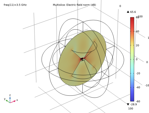 تجزیه و تحلیل و تجسم نتایج را با اصلاح اولین نمودار پیش فرض برای نشان دادن هنجار میدان E در صفحه xz آغاز کنید .