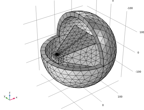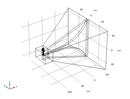 محدوده فرکانس شبیه سازی از 2 گیگاهرتز تا 6 گیگاهرتز است. رسانایی ماده فلزی در مدل به اندازه کافی بالا فرض می شود که از اتلاف در محدوده فرکانس داده شده چشم پوشی کند. بنابراین، تمام قطعات فلزی با استفاده از ویژگی هادی الکتریکی کامل (PEC) مدل‌سازی می‌شوند. یک تابع نمایی، 0.028 xدر یک منحنی پارامتریک برای ایجاد برجستگی های فلزی مخروطی که توسط یک رابط کواکسیال پر از دی الکتریک نوع SMA برانگیخته می شود، استفاده می شود. یک پورت توده ای بر روی مرز بین سطح رسانای داخلی و خارجی در انتهای کانکتور کواکسیال اختصاص داده شده است. آنتن توسط یک حوزه هوای کروی محصور شده است. بیرونی ترین لایه حوزه هوا به عنوان یک لایه کاملاً منطبق (PML) پیکربندی شده است که در آن ضخامت لایه کمی بیشتر از 0.1 طول موج در کمترین فرکانس شبیه سازی است. PML تمام تشعشعات خروجی از آنتن را جذب می کند و در طول شبیه سازی به عنوان یک محفظه آنکوئیک عمل می کند. مش توسط امواج الکترومغناطیسی، واسط فیزیک دامنه فرکانس کنترل می شود و باید بر اساس هر فرکانس شبیه سازی به صورت پویا تعریف شود، بنابراین جاروب پارامتری فرکانس بیش از مرحله مطالعه دامنه فرکانس است.