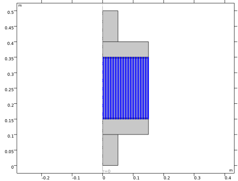 سه سیلندر تراز شده سیستم فیلتر ذرات مورد مطالعه را تشکیل می دهند: یک ورودی، یک خروجی و یک سیلندر فیلتر اصلی. فیلتر ذرات داخل سیلندر فیلتر قرار دارد. شکل 1 طرحی از یک مقطع در صفحه rz از هندسه متقارن محور دوبعدی را نشان می دهد. فیلتر در ناحیه مرکزی دارای طول فیلتر L = 200 میلی متر با شعاع فیلتر R فیلتر = 150 میلی متر است. شعاع لوله ورودی و خروجی لوله R = 50 میلی متر است. این فیلتر از یک ماده متخلخل پر از هوا (ناحیه قهوه ای) تشکیل شده است که می تواند یک ماتریس کاربید سیلیکون باشد. نخلستان های پر از هوا (آبی روشن) دارای عرض d h هستند= 5 میلی متر و دیواره های متخلخل ضخامت h t = 3.2 میلی متر هستند. در انتهای هر نخلستان یک پلاگ فولادی نفوذ ناپذیر (مشکی) وجود دارد. بقیه سیستم با هوا پر شده است.