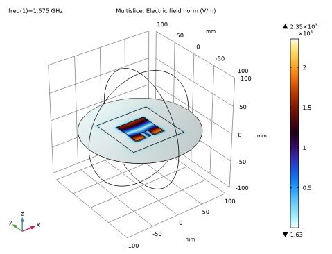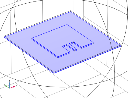 دامنه های FEM حاوی یک آنتن پچ میکرواستریپ است که توسط یک دامنه هوا احاطه شده است. آنتن توسط یک پورت توده ای از نوع یکنواخت تحریک می شود که خط تغذیه بالایی و صفحه پایین زمین را پل می کند. یک بستر 60 میل دارای ثابت دی الکتریک نسبی 3.38 است. جزئیات بیشتر در مورد طراحی آنتن و تطابق امپدانس در نمونه کتابخانه کاربردی مدل Microstrip Patch Antenna آورده شده است.. خارج از حوزه های FEM به عنوان حفره های بی نهایت تنظیم شده است که با استفاده از امواج الکترومغناطیسی، رابط عناصر مرزی تجزیه و تحلیل می شوند. یک گره اتصال میدان الکتریکی در زیر شاخه Multiphysics به جفت بین FEM و BEM در بیرونی ترین مرزهای دامنه های FEM می پردازد. برای تجزیه و تحلیل معمولی فقط FEM، یک شرایط مرزی جذب مانند شرایط مرزی پراکندگی در بیرونی ترین مرزهای بیرونی اختصاص داده می شود تا یک فضای باز برای تجزیه و تحلیل آنتن را توصیف کند.