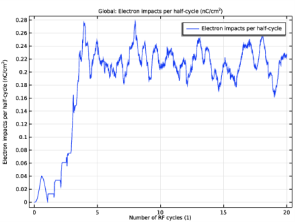 اکنون تنظیمات مطالعه را برای ردیابی ذرات تا 20 سیکل RF تنظیم کنید. یک گام زمانی نسبتاً کوچک برای ایجاد انیمیشن های با کیفیت بالاتر در پس پردازش استفاده می شود، اما یک گام زمانی بزرگتر نیز می تواند برای کاهش اندازه فایل استفاده شود.