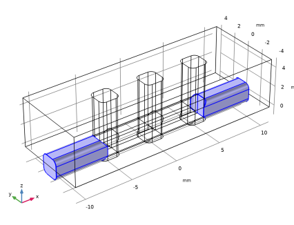 | 1 | در پنجره Model Builder ، در قسمت Component 1 (comp1)>Geometry 1 ، روی Ctrl کلیک کنید تا Anode  (boxsel1) و Cathodes  (sel1) را انتخاب کنید . |