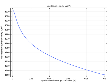 یک مجموعه داده خط برش ایجاد کنید تا چگالی جریان الکترولیت را در امتداد یک خط در وسط جداکننده رسم کنید.