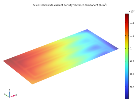 در نهایت، شکل 6 چگالی جریان الکترولیت مقطعی را در وسط الکترولیت بین آند و کاتد نشان می دهد. چگالی جریان نزدیک به ورودی، جایی که نسبت آب به هیدروژن بالا است، بالاترین میزان است و به سمت خروجی کاهش می یابد.