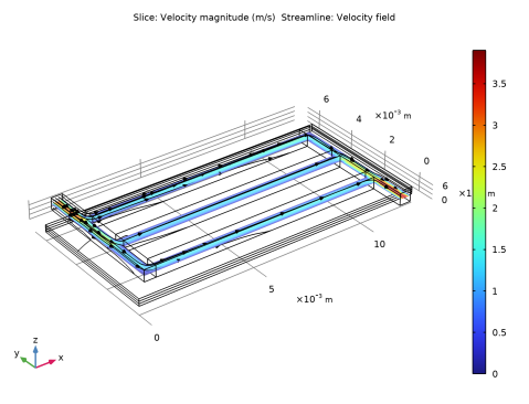 شکل 2 توزیع بزرگی سرعت را در سلول نشان می دهد. بالاترین سرعت ها نزدیک به ورودی و خروجی قرار دارند.