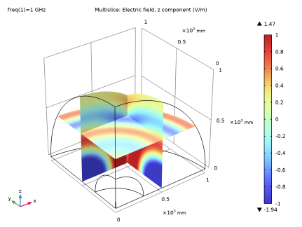 در اجرای COMSOL، تابع میدان دور میدان را در فاصله 1 متری از منبع تابش نشان می دهد. بنابراین، رفتار مجانبی میدان الکتریکی توسط