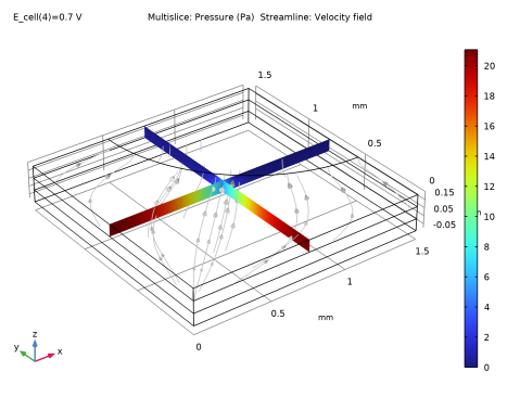 فشار دارسی با خطوط جریان سرعت نیز بهطور پیشفرض در پتانسیل سلولی 0.5 ولت رسم میشود. برای رسم در پتانسیل سلولی 0.7 ولت به صورت زیر تغییر دهید.