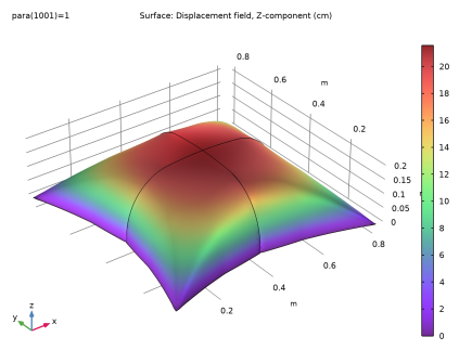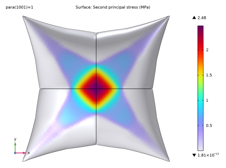 در این مثال، یک کیسه هوای مربعی ساخته شده از ماده هایپرالاستیک نئو هوکی با استفاده از هوای تحت فشار باد می شود. نتایج با مثال ارائه شده در Ref. 1 .