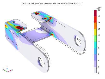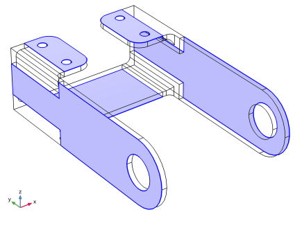 در این مثال شما تنش را در یک براکت تحت بارهای خارجی مطالعه می کنید. قطعات نازک با ضخامت ثابت با استفاده از رابط Shell مدل‌سازی می‌شوند و نواحی انتقالی که جلوه‌های سه بعدی مهم هستند با استفاده از رابط مکانیک جامد مدل‌سازی می‌شوند. این مثال همچنین نحوه اتصال عناصر پوسته را با عناصر جامد نشان می دهد.