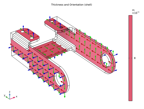 نمودارهای از پیش تعریف شده را اضافه کنید که هندسه پوسته و همچنین ضخامت و جهت گیری سیستم پوسته محلی را نشان می دهد. نمودار اول سطح بالایی را به رنگ قرمز و سطح پایینی را با رنگ آبی نشان می دهد.
