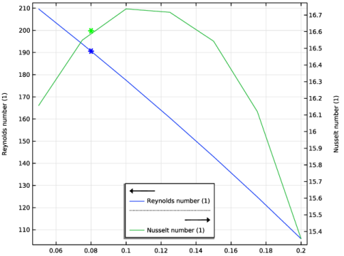 | 12 | برای گسترش بخش Legends کلیک کنید . در نوار ابزار Reynolds and Nusselt Numbers ، روی   Plot کلیک کنید . |