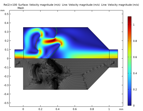 این مدل از چندجمله ای های مرتبه دوم برنشتاین برای تغییر شکل هندسه استفاده می کند. این قابلیت از طریق ویژگیهای Free Shape Domain و Polynomial Boundary در دسترس است. کاهش حداکثر جابجایی تضمین شده است که تمایل به عناصر معکوس یا برخورد مرزها را کاهش می دهد. سه خط تغییر شکل داده می شود و دو تا از آنها اجازه خواهند داشت در امتداد مرزهای غلتک بلغزند. نرخ های جریان ثابت هستند، بنابراین افت فشار است که به عنوان تابع هدف در نظر گرفته می شود. بهینه سازی از روش الحاقی برای تحلیل حساسیت استفاده می کند و بنابراین مدل را می توان در حدود 10 دقیقه حل کرد.