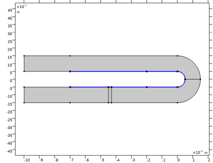 این مدل از ماژول بهینه سازی برای به حداقل رساندن پراکندگی ناشی از چرخش یک گونه شیمیایی در یک جریان الکترواسموتیک از طریق یک کانال منحنی استفاده می کند ( مرجع 1 ، مرجع 2 ، و مرجع 3 ). پراکندگی عمدتاً توسط دو عامل ایجاد می شود: تفاوت در طول مسیر بین مرزهای داخلی و خارجی کانال منحنی، و تفاوت در بزرگی میدان الکتریکی در امتداد این دو مرز. پراکندگی ناشی از منحنی ممکن است توانایی تشخیص گونه را مختل کند. پروفیل غلظت پایین دست تولید شده توسط هندسه بهینه شده دارای حداکثر غلظت تقریباً سه برابر بزرگتر از غلظت تولید شده توسط هندسه اصلی است.