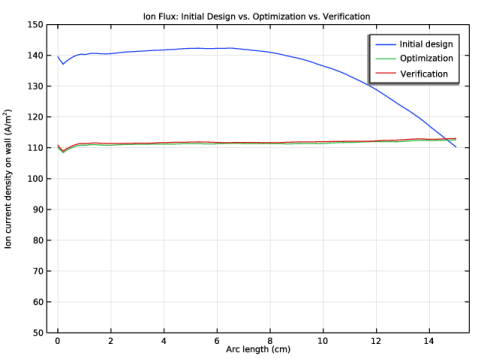 در پنجره Model  Builder ، روی Ion  Flux:  Initial  Design  vs.  Optimization  vs.  Verification کلیک کنید .