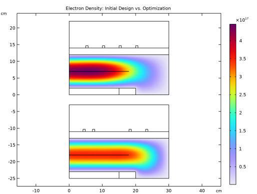 این مدل نشان می دهد که چگونه می توان از بهینه سازی شکل برای طراحی سیم پیچ های یک راکتور ICP برای به دست آوردن یکنواختی پلاسما استفاده کرد. راکتور مورد مطالعه یک ICP مسطح با سیم پیچ ها در جهت شعاعی توزیع شده است. مرحله مطالعه بهینه سازی برای یافتن بهترین جای سیم پیچ استفاده می شود تا گرادیان چگالی الکترون در مرکز راکتور به حداقل برسد. چگالی الکترون هدف در مرکز راکتور نیز با تغییر توان سیم پیچ تحمیل می شود.