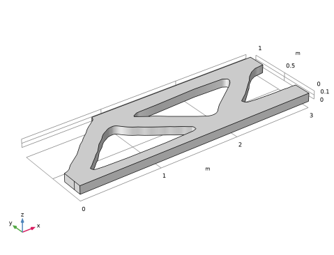 نتیجه بهینه سازی توپولوژی در شکل 1 نشان داده شده است . این مدل جابجاییهای خارج از صفحه را محاسبه میکند، اما طراحی مشابه نتیجه دوبعدی در مدل بهینهسازی توپولوژی یک پرتو MBB است .