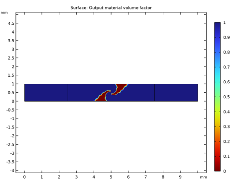 شکل 2 متغیر طراحی، γ را نشان می دهد که توزیع مواد متخلخل را نشان می دهد. همانطور که نمودار نشان می دهد، γ در اکثر حوزه ها 0 یا 1 استعرض این منطقه انتقال وابسته به مش است. شما می توانید آن را با کاهش اندازه مش عنصر کاهش دهید. روش دیگر، کاهش عدد دارسی نیز مرزهای سخت تری را در رابط بین حوزه های متخلخل و باز ایجاد می کند.