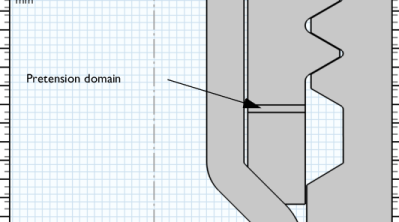 پیش کشش پیچ با استفاده از یک کرنش اولیه در جهت z  تنظیم شده در یک حوزه پیش کشش تضمین می شود، شکل زیر را ببینید: