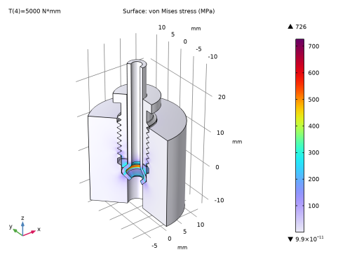 برای این شبیهسازی متقارن محوری دوبعدی، اعمال گشتاور به جزء آداپتور گزینهای نیست. در عوض یک پیش بار محوری ( W ) را می توان بر اساس گشتاور ( T ) همانطور که در Ref. 1 :