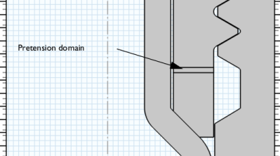 پیش کشش پیچ با استفاده از یک کرنش اولیه در جهت z  تنظیم شده در یک حوزه پیش کشش تضمین می شود، شکل زیر را ببینید: