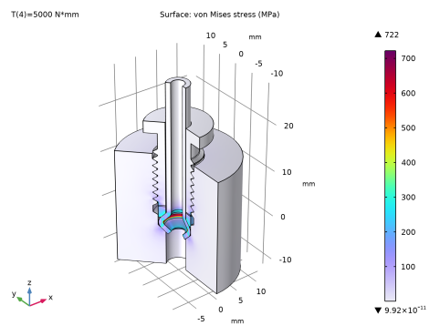 برای این شبیهسازی متقارن محوری دوبعدی، اعمال گشتاور به جزء آداپتور گزینهای نیست. در عوض یک پیش بار محوری ( W ) را می توان بر اساس گشتاور ( T ) همانطور که در Ref. 1 :