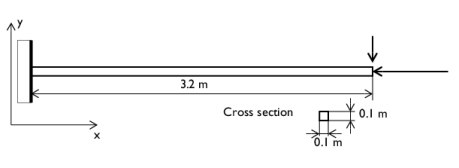 با توجه به بار محوری فشاری زیاد و هندسه باریک، این یک مشکل کمانش است. اگر می خواهید رفتار کمانش و پس کمانش یک مسئله متقارن را مطالعه کنید، لازم است تقارن را تا حدودی برهم بزنید. در اینجا بار عرضی کوچک به این منظور خدمت می کند. یک رویکرد جایگزین، معرفی یک نقص اولیه در هندسه خواهد بود.