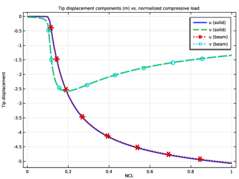 نمودار انحراف محوری نشان می دهد که یک ناپایداری در یک مقدار پارامتر نزدیک به 0.1 رخ می دهد که مربوط به بار فشاری 3.84· 105  N است. اغلب در عمل مشاهده می شود که بار بحرانی یک سازه ناقص به طور قابل توجهی کمتر از بار است. ساختار ایده آل