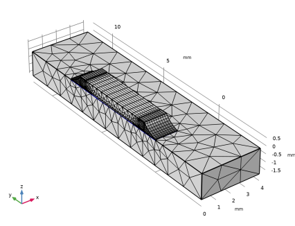 در این مثال، رابط استرس حرارتی به طور خودکار رابط مکانیک جامد و رابط انتقال حرارت را اضافه و جفت می کند. این کار توسط ویژگی چندفیزیکی از پیش تعریف شده انبساط حرارتی انجام می شود .