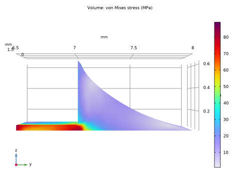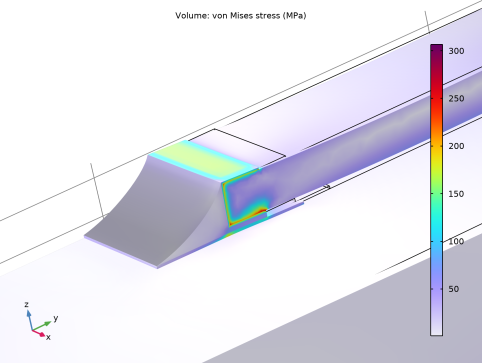 در این مثال، رابط استرس حرارتی به طور خودکار رابط مکانیک جامد و رابط انتقال حرارت را اضافه و جفت می کند. این کار توسط ویژگی چندفیزیکی از پیش تعریف شده انبساط حرارتی انجام می شود .