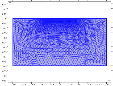 مش تعریف شده توسط کاربر در تصویر زیر نشان داده شده است. مش نگاشت شده با توزیع خاص به ایجاد لایه هایی از عناصر نازک در زیر دروازه کمک می کند، جایی که گرادیان بزرگ غلظت حامل باید توسط مش حل شود.