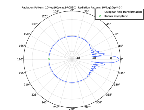 رابط فیزیک امواج الکترومغناطیسی، پراکندگی مجانبی برای تقریب میدان دور پراکنده یک جسم که فقط با شرایط مرزی رسانای الکتریکی کامل (PEC) پیکربندی شده است، مفید است. میدان پسزمینه برخوردی یک موج قطبی z است که در امتداد محور x مثبت منتشر میشود . فقط PEC در این رابط فیزیک موجود است. بنابراین، کره به طور پیش فرض روی PEC تنظیم شده است. ویژگی محاسبه میدان دور، میدان پس زمینه سطح روی پراکنده فلزی را به میدان دور تبدیل می کند. نیازی به اضافه کردن یک حوزه هوای اطراف و شرایط مرزی جذب کننده مانند آنالیز اجزای محدود معمولی نیست.