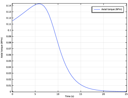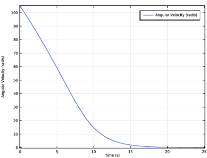 در طول محاسبه، سرعت زاویه ای به عنوان تابعی از زمان همراه با گشتاور و توان تلف شده ترسیم شده است. یک برچسب مناسب بدهید و با موارد گزارش شده در اسناد مقایسه کنید.