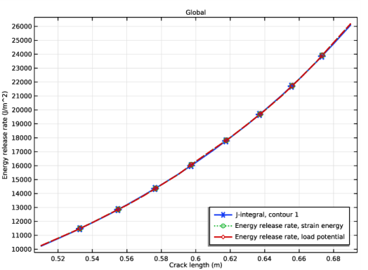 تعیین ضریب شدت تنش مستقیماً از حالت محلی در نوک ترک مشکل ساز است، زیرا تنش ها در آنجا منفرد هستند. به همین دلیل، روشهای غیرمستقیم مبتنی بر انرژی جذاب هستند. در این مثال، K I با استفاده از انتگرال J و از نرخ آزادسازی انرژی محاسبه می شود.