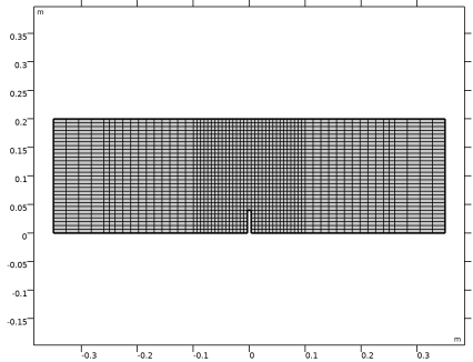 علاوه بر این، بریدگی با عمق α m = ( 0.5 ، 0.2 ، 0 ) توصیف می شود. در این مثال، نمونه داده شده با n = 2 و α m = 0.2 مدل شده است. توجه داشته باشید که عرض بریدگی روی یک عنصر مش تنظیم شده است. عمق تیر ثابت و برابر با 50 میلی متر است. از فرض تنش صفحه استفاده می شود. تیر به سادگی پشتیبانی می شود و با یک بار نقطه ای توزیع شده بالای شکاف بارگذاری می شود. همانطور که در مجموعه آزمایشی شرح داده شده در Ref. 1، بار از طریق جابجایی دهانه ترک (CMOD) کنترل می شود که به طور یکنواخت برای همه نمونه های آزمایش شده افزایش می یابد. اگرچه انحراف نیز به طور یکنواخت برای n = 2 و α m = 0.2 افزایش می یابد ، ممکن است این مورد برای نمونه های بزرگتر نباشد.