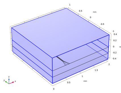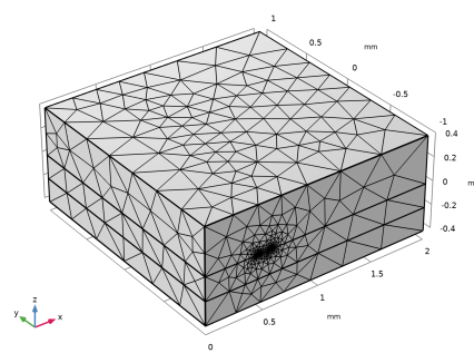 برای تمرکز بر روی فیزیک مدل و پیاده سازی، از ویژگی هندسه واردات برای ساخت سازه استفاده می شود. از آنجایی که ساختار به مش بسیار حساس است و مش به نوبه خود به هندسه حساس است، استفاده از هسته COMSOL برای بازتولید دقیق نتایج در این مثال مهم است. هسته CAD نیز می تواند مورد استفاده قرار گیرد، با این حال یک فرآیند پالایش مش باید بر این اساس انجام شود زیرا ممکن است با وجود تنظیمات مش یکسان، رزونانس کمی تغییر کند.