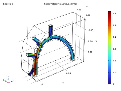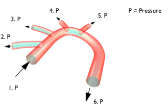 در اینجا معادلات ناویر-استوکس در حوزه خون حل می شود. در هر سطحی که مدل یک ظرف را به یک انتهای ناگهانی می رساند، بار را با توزیع فشار مشخص نشان می دهد.